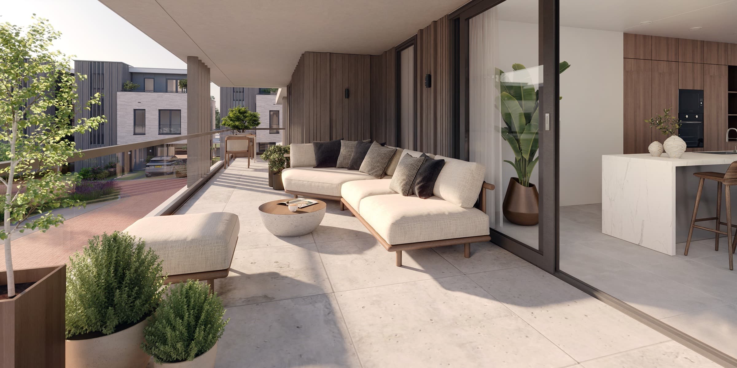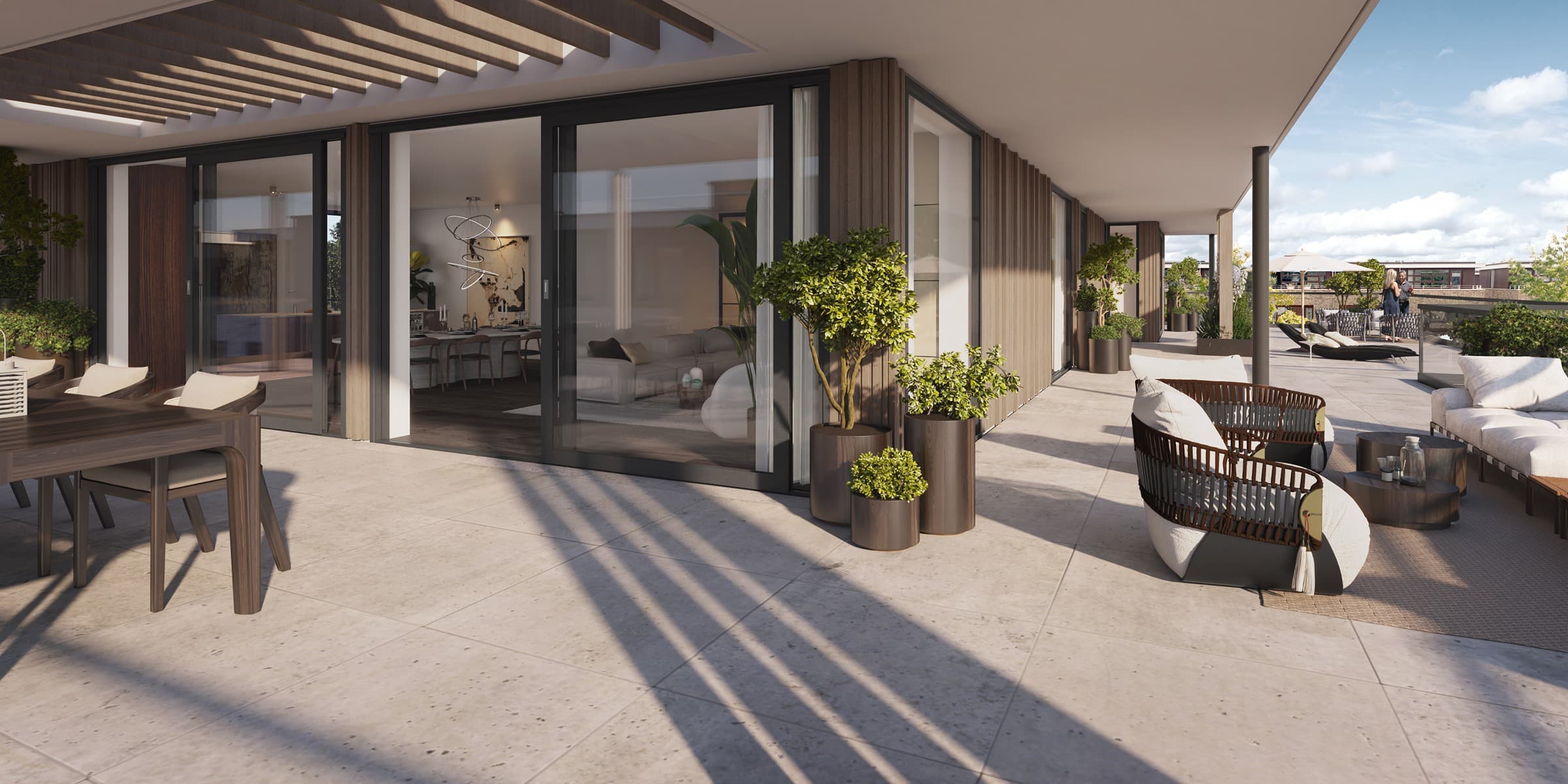 Geen tuinonderhoud maar heerlijk royale terrassen waar je op elk moment van de dag in de zon kan zitten. Zowel de villa’s als de appartementen zijn ruim bedeeld met terrassen waar alle plek is voor elke terraswens.